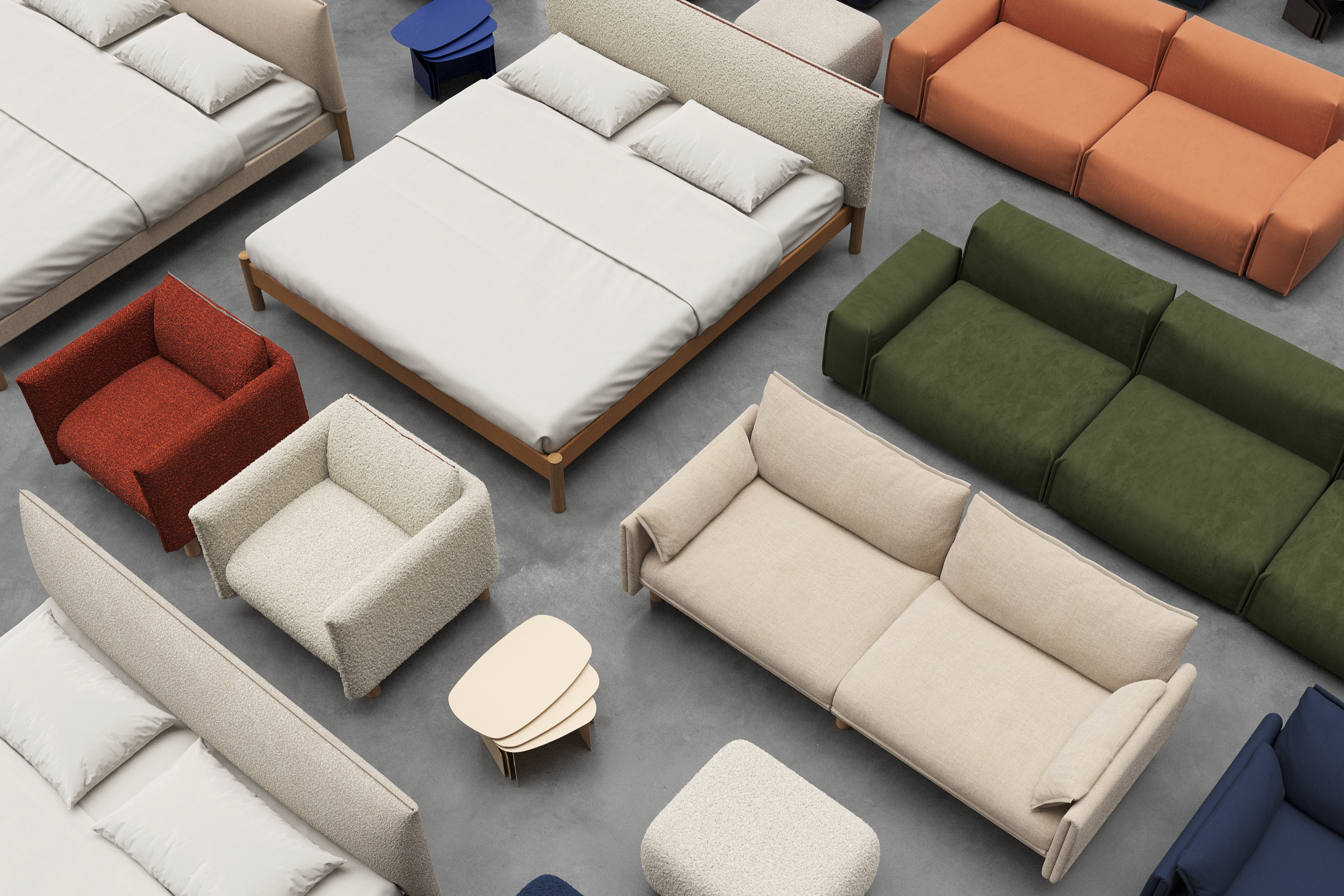 The ground floor is dedicated to the full Raw Edges collection — including the Cozy, Float, Pillow and REST sofas. Upstairs, we’re thrilled to give you a first look at HUG, our latest collaboration with the award-winning design studio Pearson Lloyd.