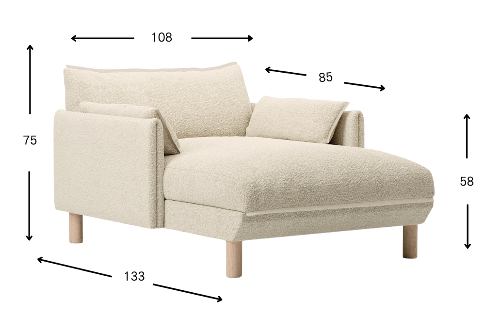 Cozy 1.5 Seater Chaise SofaLight Grey Weave