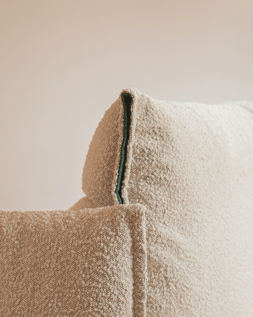 Hug uses Cozmo’s modular system, with narrow and wide options across sofas, chaises and armchairs. Each piece fits through any doorway and can be reconfigured as your space or needs change.